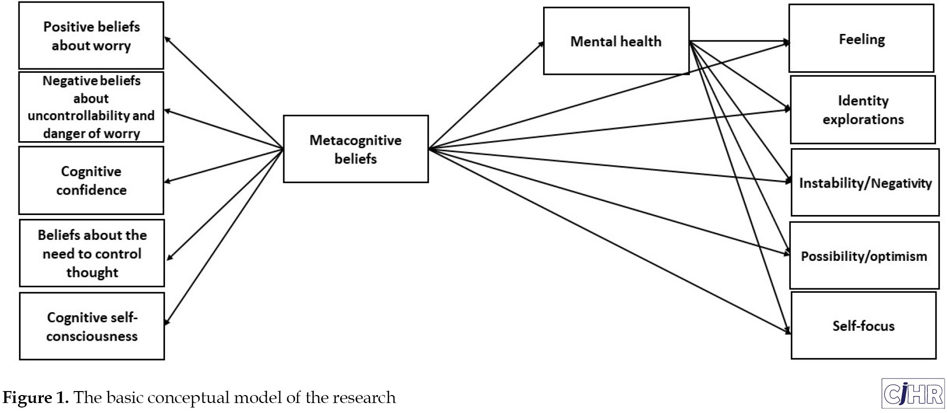 19]. Based on the above-mentioned items, there is a relationship between metacognitive factors and identity mediated by mental health. The literature review indicated that a few studies have dealt with the relationship between these three variables in a structural model. Accordingly, the present study aimed to investigate the relationship of metacognitive beliefs with the dimensions of EA identity mediated by mental health in university students.