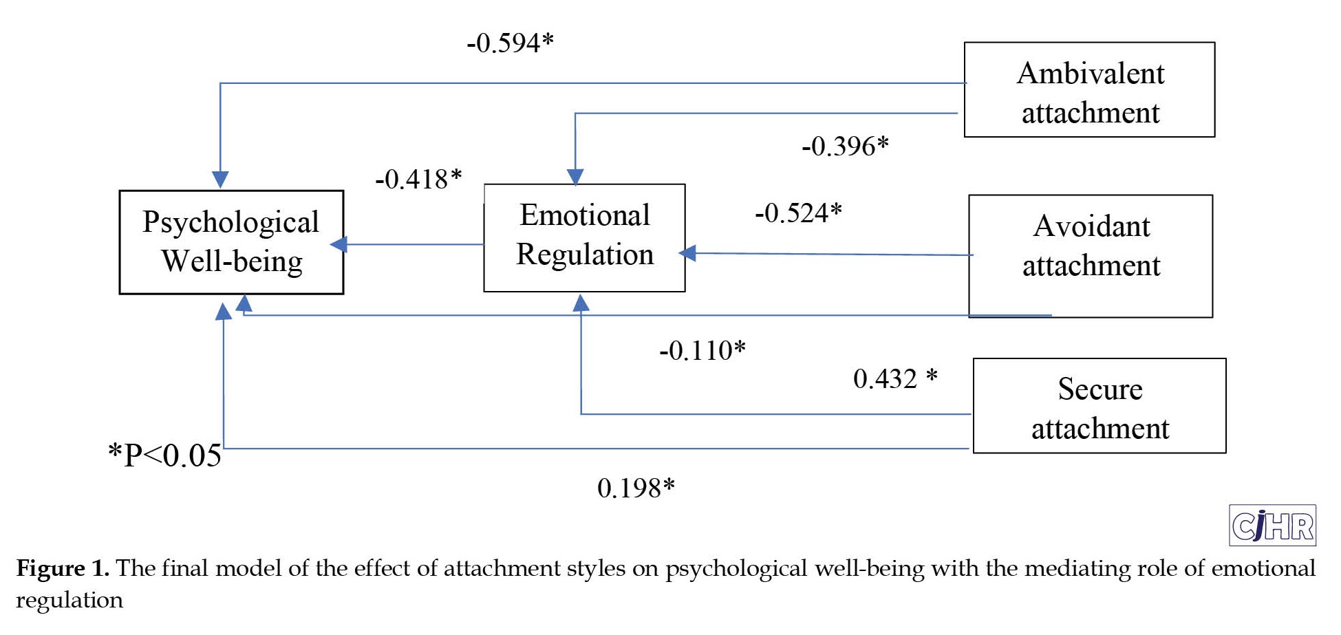 29] has been reported. However, no study was found to determine the relationship between attachment styles and psychological well-being through the mediating role of emotional regulation.