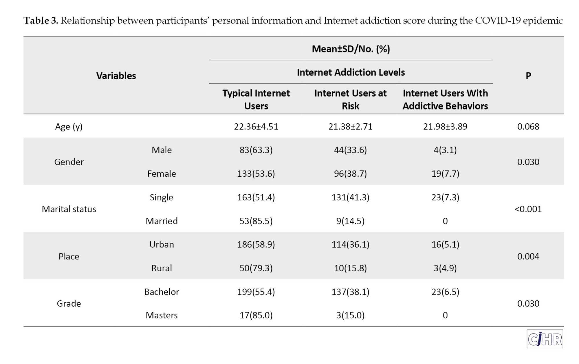 In our study, it was shown that the most important predictors of Internet addiction are female gender, singles, and living in urban areas. In a study conducted by Sadat Ahmadi et al. In 2012 with the aim of investigating the prevalence of Internet addiction and its relationship with demographic characteristics among students of Allameh Tabatabai University, It was observed that the prevalence of Internet addiction is higher among girls than boys and also among undergraduate students than graduate students [